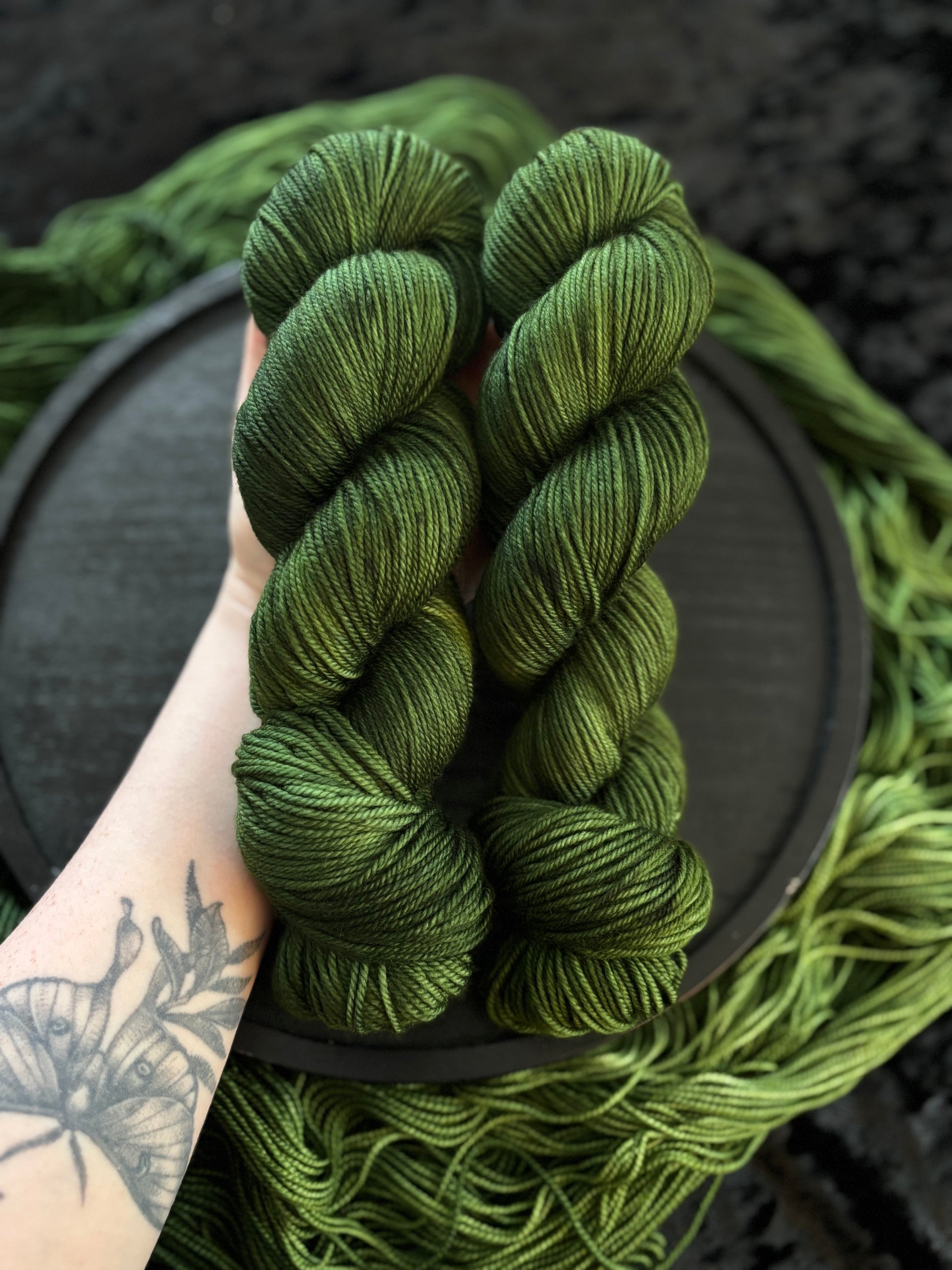 All yarn is hand dyed with love in Providence, Rhode Island. Wicked Fibers uses high quality dye in small batches. Dye lots may vary as each skein is unique.