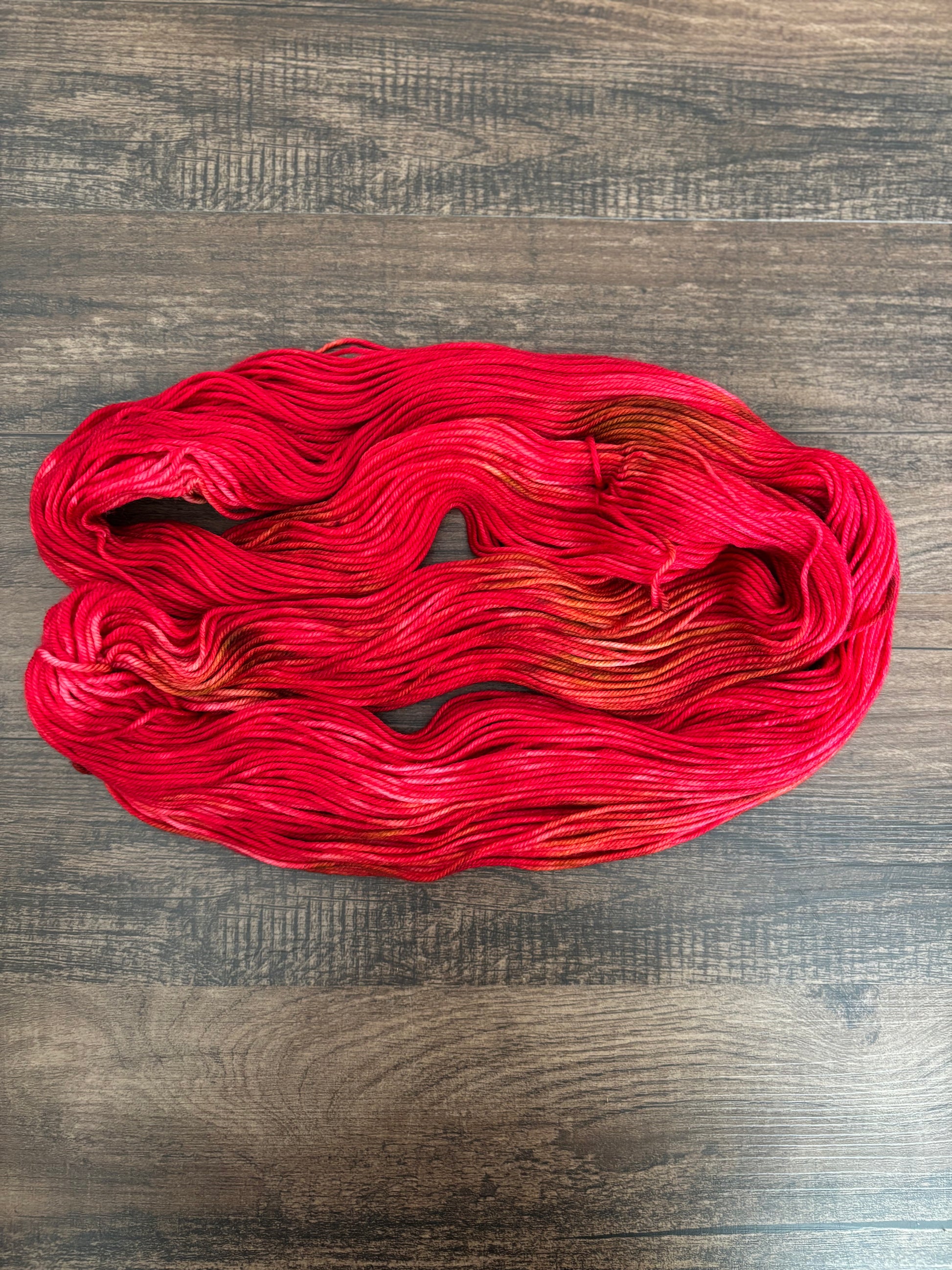 This is a red and gold OOAK hank. Only 1 available in DK weight. This was a color experiment for an upcoming collection that just didn't turn out the way I intended. (NOT the final coloway so you will be unable to get this color in future)